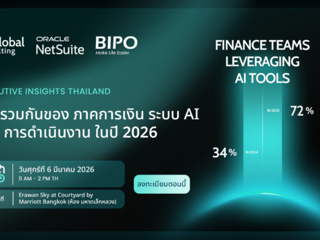 Executive Insights Thailand: การรวมกันของ ภาคการเงิน ระบบ AI และ การดำเนินงาน ในปี 2026 ลงทะเบียนตอนนี้ วันศุกร์ที่ 6 มีนาคม 2026 11 AM - 2 PM TH Erawan Sky...