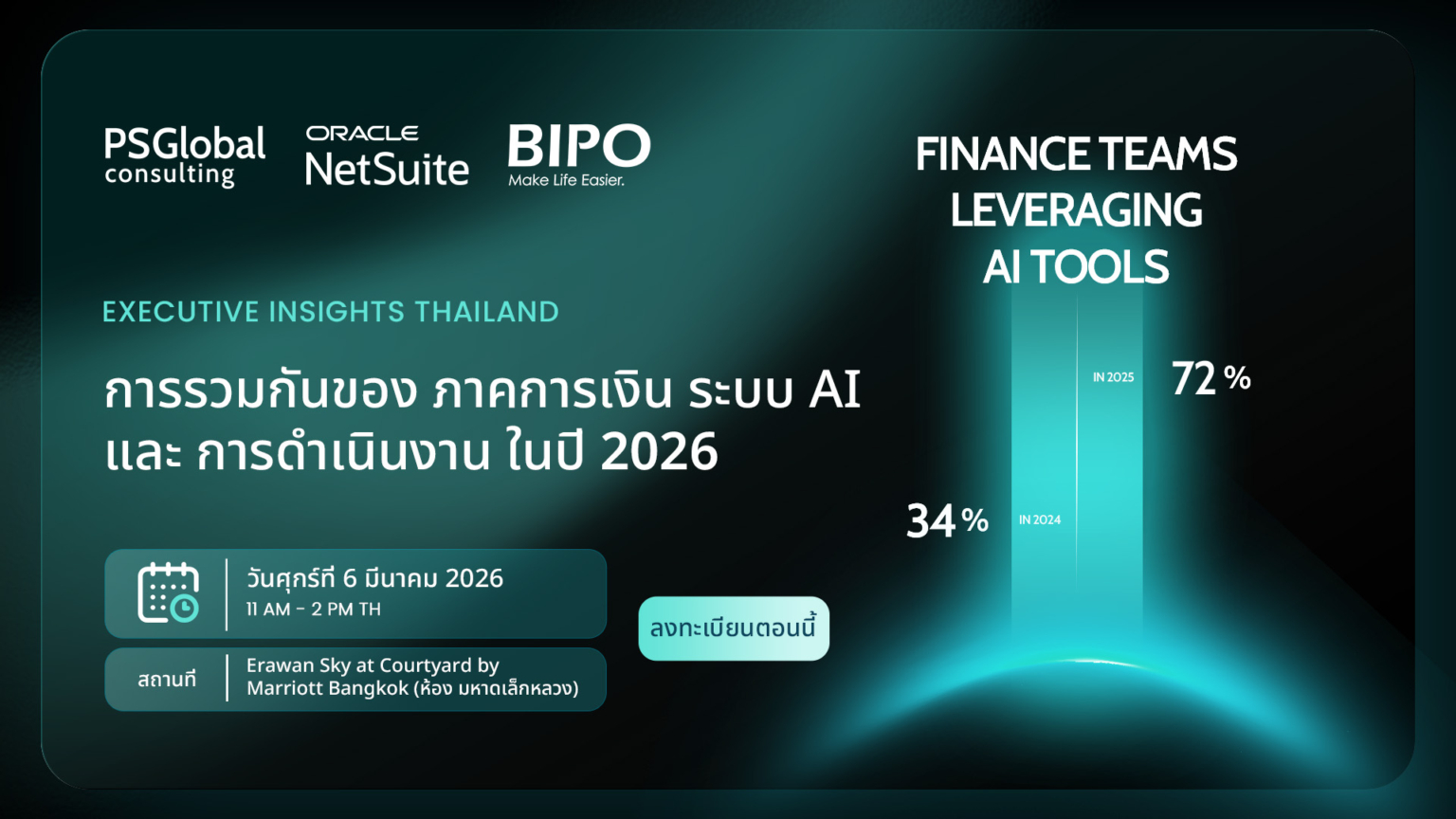 Executive Insights Thailand: การรวมกันของ ภาคการเงิน ระบบ AI และ การดำเนินงาน ในปี 2026 ลงทะเบียนตอนนี้ วันศุกร์ที่ 6 มีนาคม